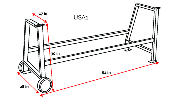 Steel frame rolling stand to easily transport bending brake or saw table on the jobsite.